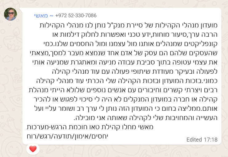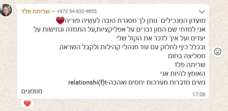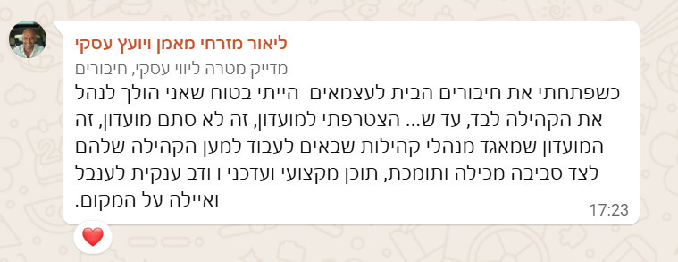 מקום לשאול, להתייעץ ולקבל עזרה בזמן אמת מהקבוצה.